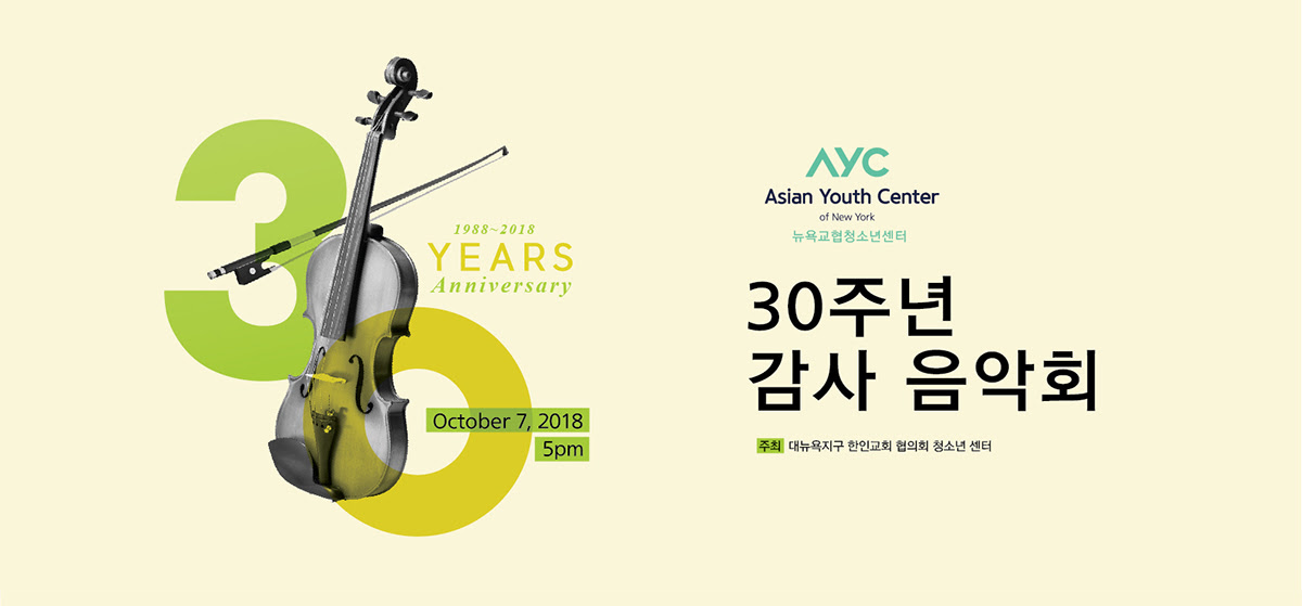 주님의 이름으로 문안 드립니다. 뉴욕의 한인교회 역사가 100년을 바라보는 가운데, 교협 청소년센터(AYC: Asian Youth Center of New York)는 올 해 창립 30주년을 맞이하게 되었습니다. 하나님의 뜻에 따라 세워지고 은혜로 이 기관이 사역을 지속해 올 수 있었던 것은, 여러 목사님들의 기도와 후원이 있었기에 가능하였습니다.
