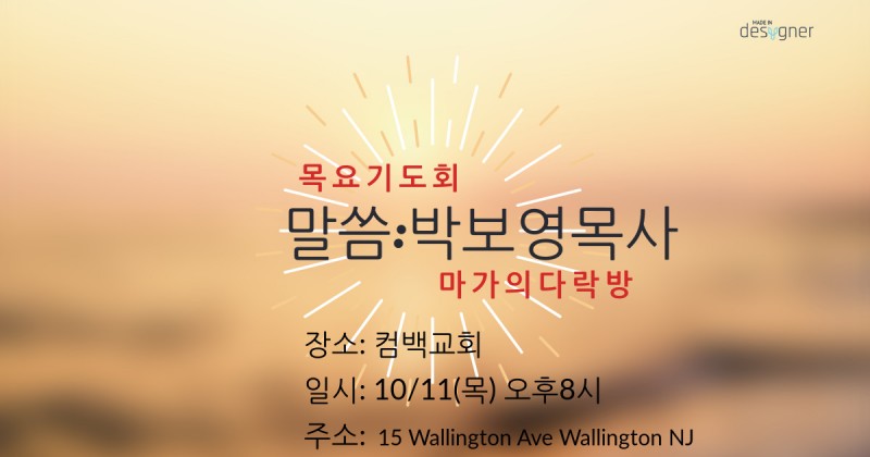 장소 : 뉴저지컴백교회