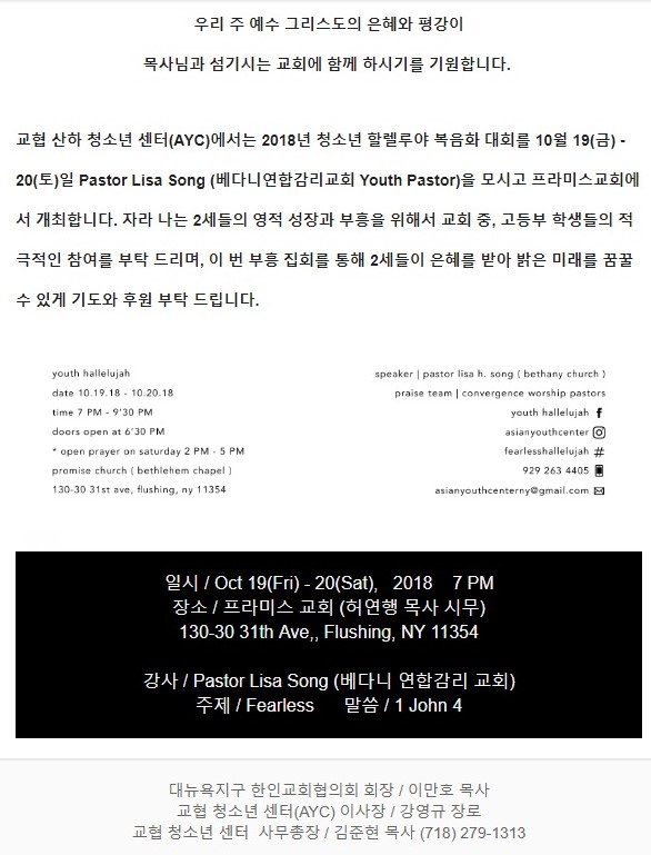 "각종 안내" 게시판 안내 복음뉴스 2018.12.31