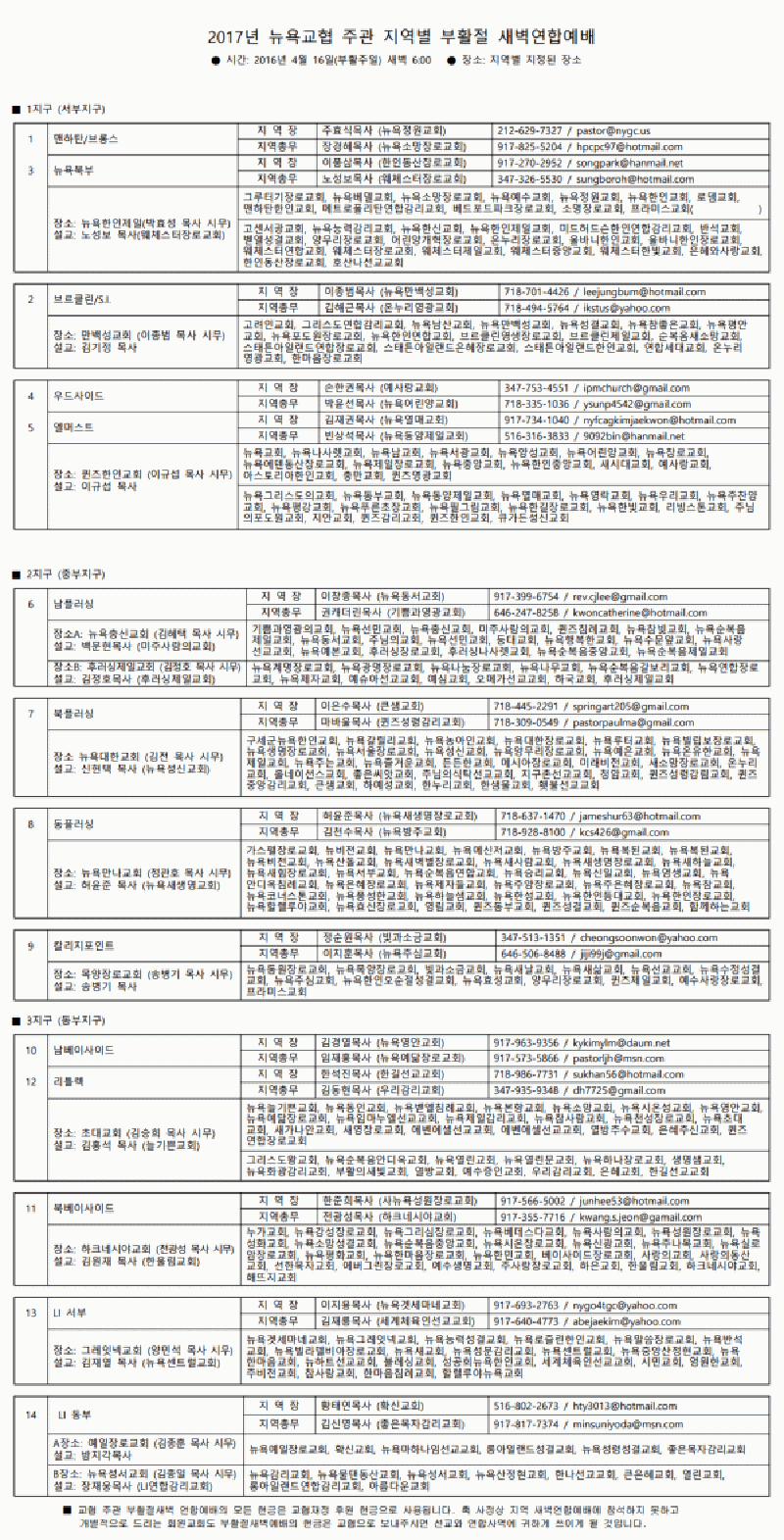 2017년 뉴욕교협 주관 지역별 부활절 새벽연합예배