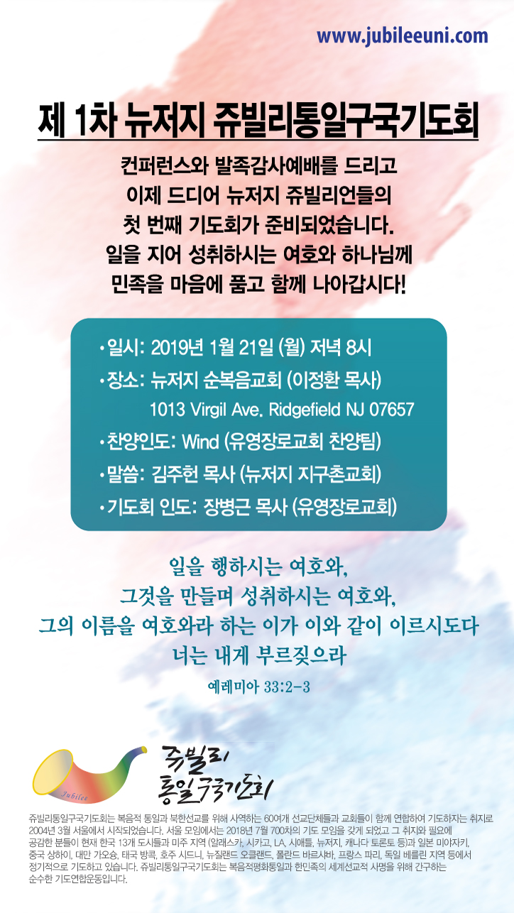 뉴저지 쥬빌리 통일 구국 기… 0 2019.01.15 17:20