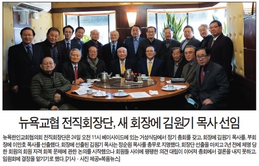 뉴욕교협 전직회장단, 새 회장에 김원기 목사 선임