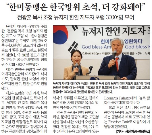 복음뉴스 제공 2021년 10월 21일(목) 자 뉴욕일보 A2면 기사