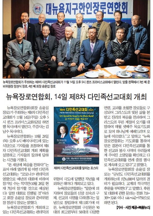 복음뉴스 제공 2021년 11월 3일(수) 자 뉴욕일보 A2면 기사