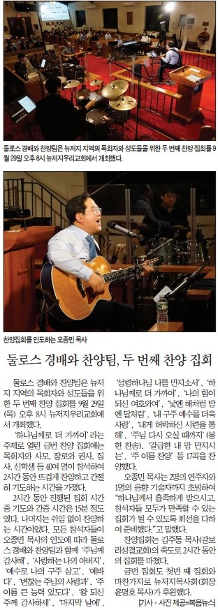 복음뉴스 제공 2022년 10월 3일(월) 자 뉴욕일보 A4면 기사