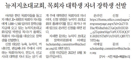 복음뉴스 제공 2022년 10월 11일(화) 자 뉴욕일보 A4면 기사