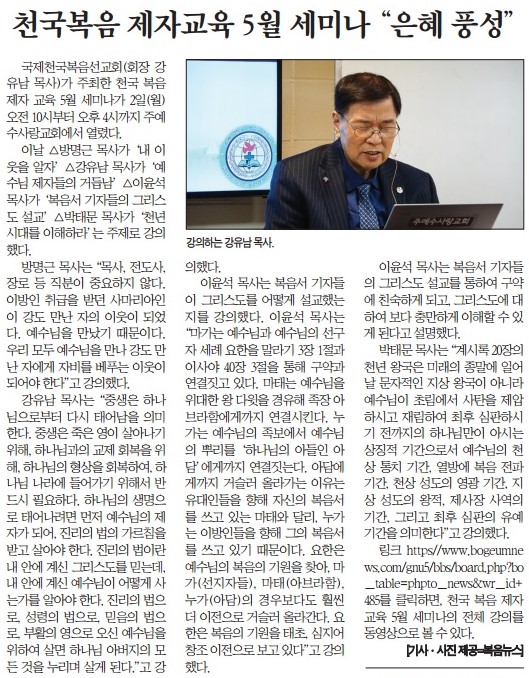 천국복음 제자교육 5월 세미나 "은혜 풍성"