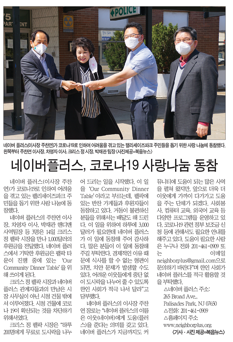 복음뉴스 제공 2020년 4월 15일(수) 자 뉴욕일보 A3면 기사 PDF 파일로 보기 ==> https://www.bogeumnews.com/pdf/83.pdf