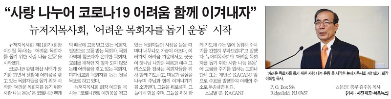 복음뉴스 제공 2020년 11월 18일(수) 자 뉴욕일보 A3면 기사