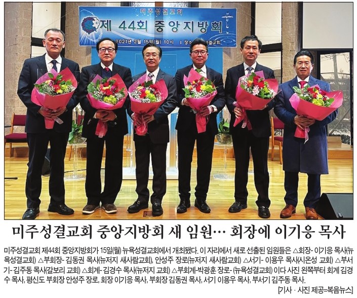 미주성결교회 중앙지방회 새 임원 --- 회장에 이기응 목사