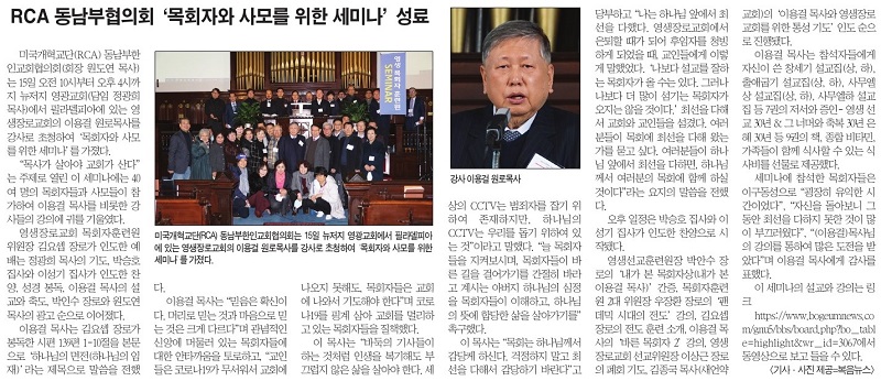 RCA 동남부협의회 '목회자와 사모를 위한 세미나' 성료