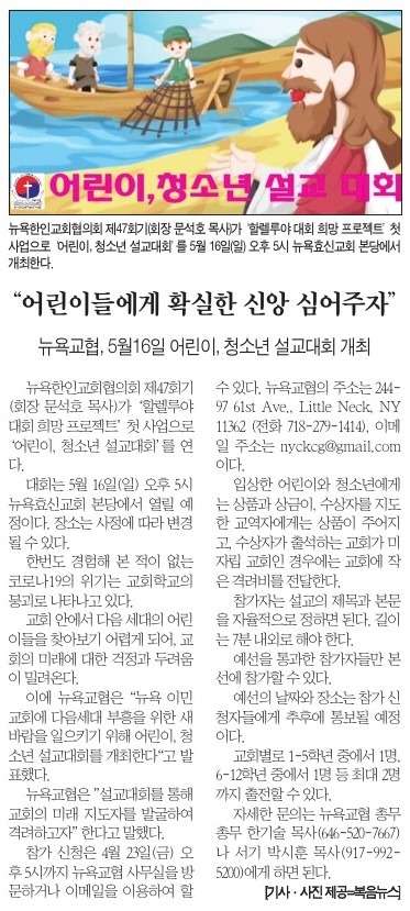 복음뉴스가 뉴욕일보에 제공하는 기사는, 지면의 제약으로 인하여 기사의 내용이 줄어들거나 표현이 달라지는 경우가 있음을 양해하여 주시기 바랍니다. ⓒ 복음뉴스(BogEumNews.Com)