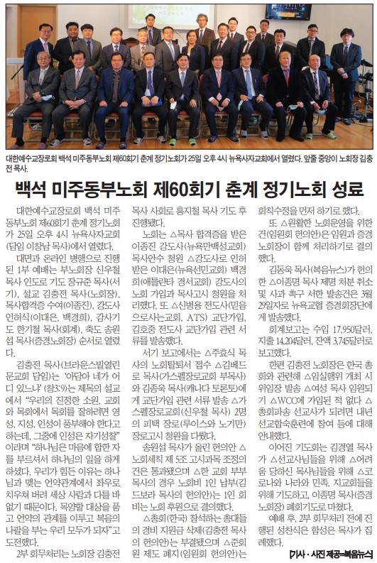 백석 미주동부노회 제60회기 춘계 정기노회 성료