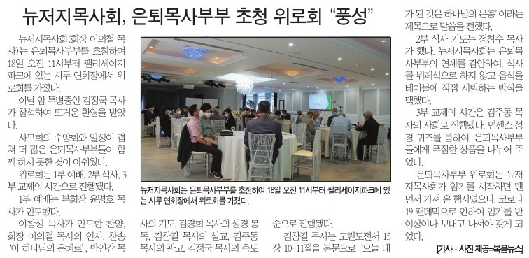 복음뉴스 제공 2021년 5월 20일(목) 자 뉴욕일보 A3면 기사