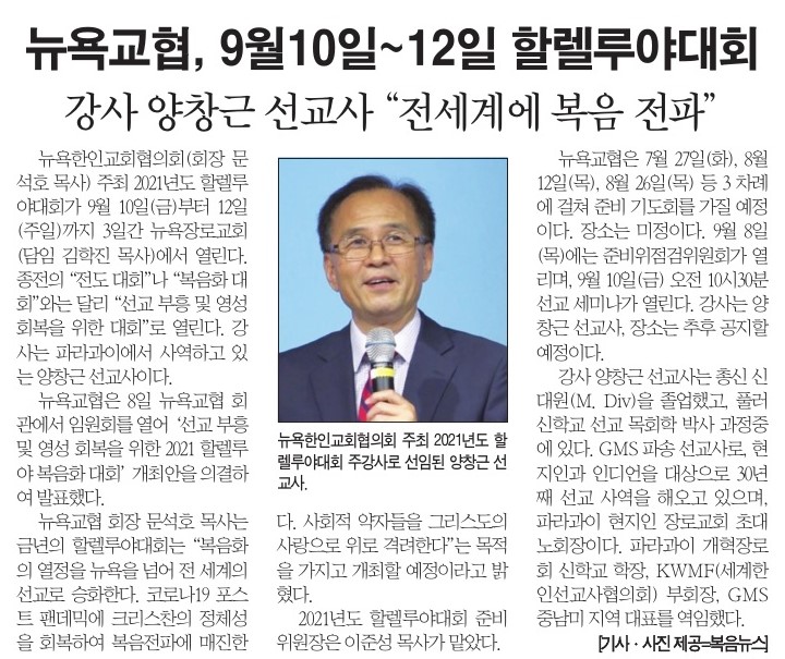 복음뉴스 제공 2021년 7월 10일(토) 자 뉴욕일보 A2면 기사