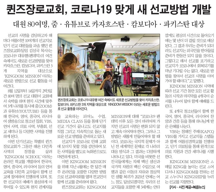 퀸즈장로교회, 코로나 19 맞게 새 선교방법 개발