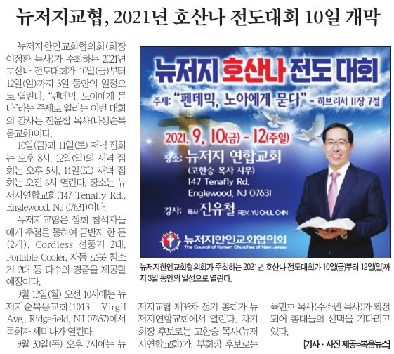 뉴저지교협, 2021년 호산나 전도 대회 10일 개막