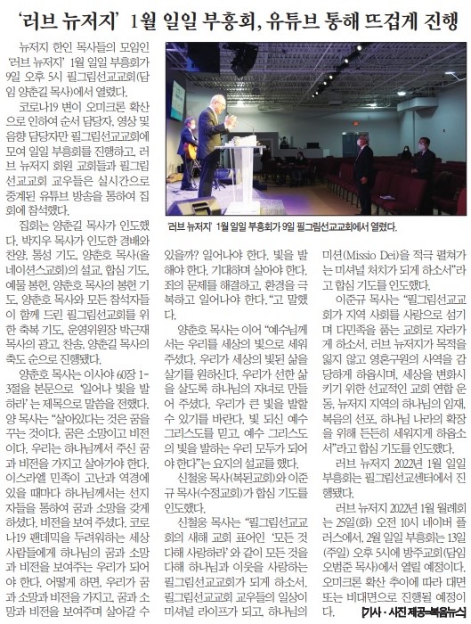 복음뉴스 제공 2022년 1월 12일(수) 자 뉴욕일보 A2면 기사
