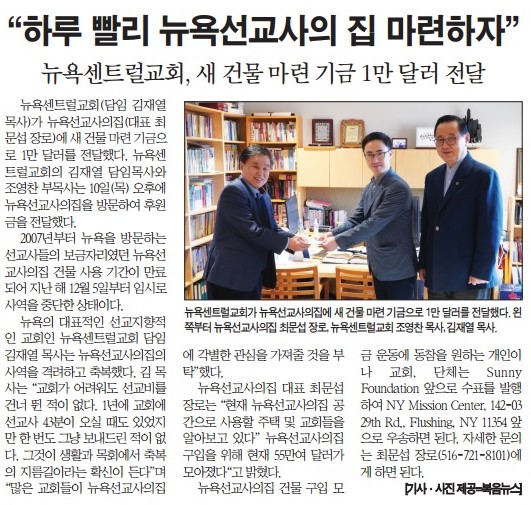 "하루 빨리 뉴욕선교사의집 마련하자"