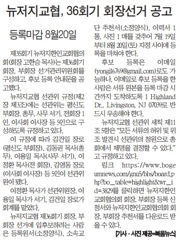 456 "현 뉴욕교협 회장 사퇴하고 회장, 부회장 새로 선출해야 한다" 복음뉴스 2023.01.07