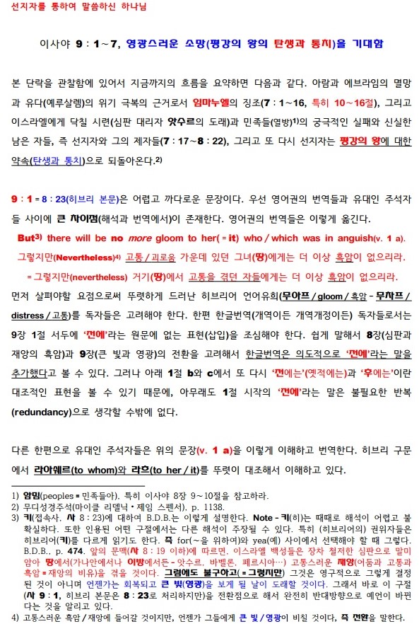 이사야 9장 1-7절, 영광스러운 소망 (평강의 왕의 탄생과 통치) 을 기대함 작성자 정보 한삼현 목사 작성 작성일 2025.05.07 14:59 컨텐츠 정보 목록 본문 ⓒ 복음뉴스(BogEumNews.Com) SNS 공유 관련자료 댓글 0 등록된 댓글이 없습니다. 로그인한 회원만 댓글 등록이 가능합니다. 목록