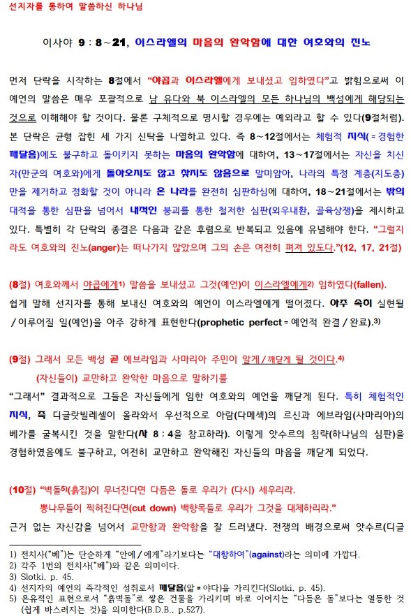 이사야 9장 8∼21절, 이스라엘의 마음의 완악함에 대한 여호와의 진노 작성자 정보 한삼현 목사 작성 작성일 2025.06.19 09:48 컨텐츠 정보 목록 본문 ⓒ 복음뉴스(BogEumNews.Com) SNS 공유 관련자료 댓글 0 등록된 댓글이 없습니다. 로그인한 회원만 댓글 등록이 가능합니다. 목록