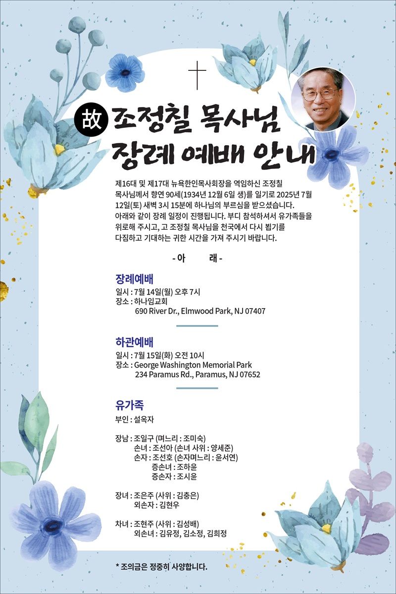 고 조정칠 목사 장례 절차 안내