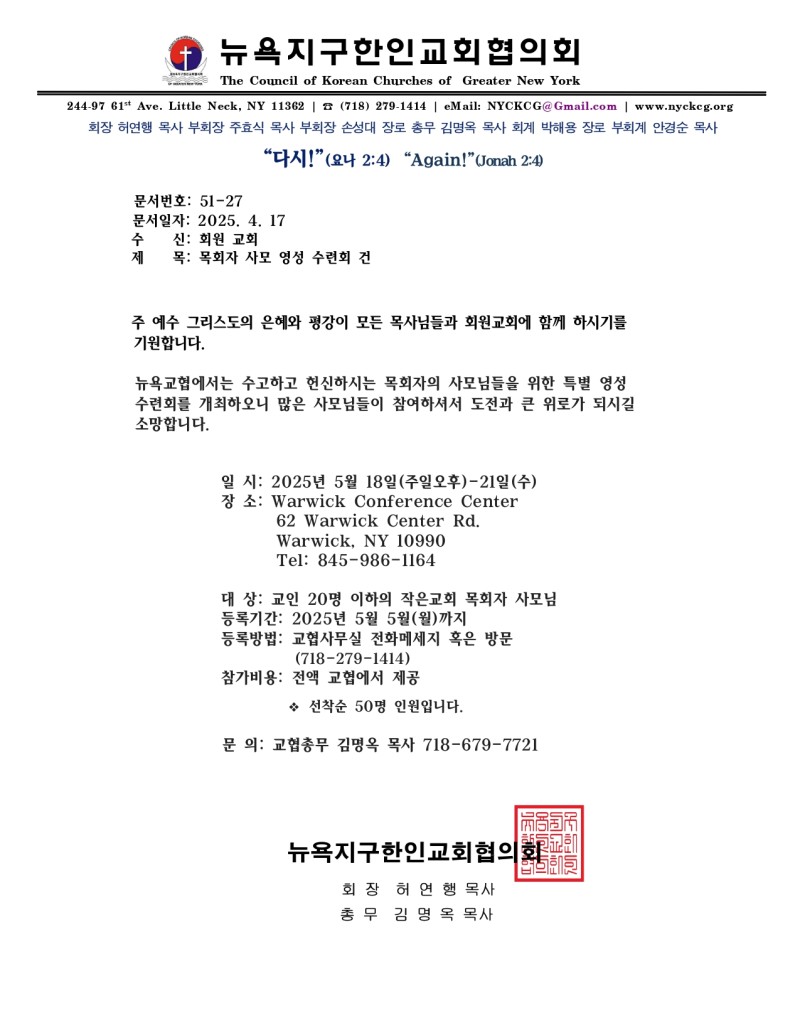 목회자 사모 영성 수련회 안내 작성자 정보 뉴욕교협 작성 작성일 2025.04.17 16:02 컨텐츠 정보 목록 본문 . SNS 공유 관련자료 댓글 0 등록된 댓글이 없습니다. 로그인한 회원만 댓글 등록이 가능합니다. 목록