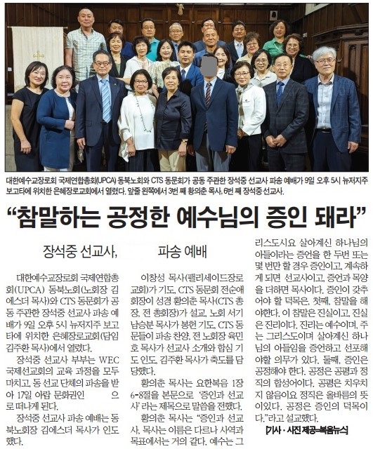 복음뉴스 제공 2023년 7월 11일(화) 자 뉴욕일보 A3면 기사