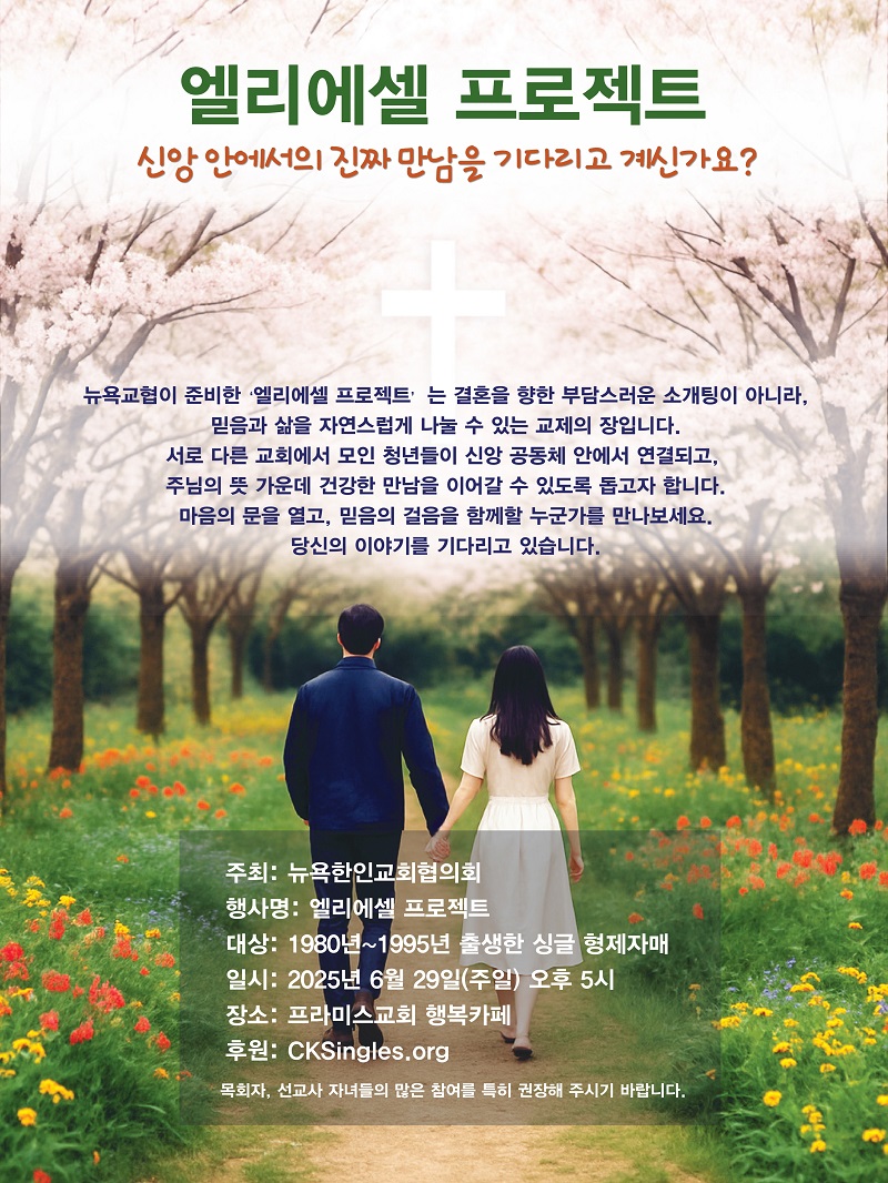 뉴욕교협, 6월 29일 '엘리에셀 프로젝트' [2025년 5월 22일 목요일 자 뉴욕일보 기사] ==> https://www.bogeumnews.com/gnu54/bbs/board.php?bo_table=nyilbo&wr_id=296