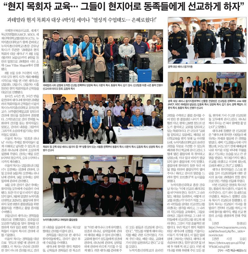 복음뉴스 제공 2025년 8월 29일(금) 자 뉴욕일보 A4면 기사