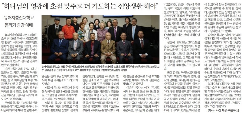 복음뉴스 제공 2025년 5월 24일(토) 자 뉴욕일보 A10면 기사