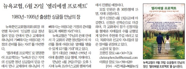 뉴욕교협, 6월 29일 '엘리에셀 프로젝트'