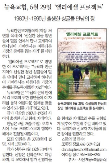 뉴욕교협, 6월 29일 '엘리에셀 프로젝트'