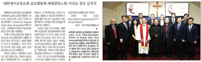 대한예수교장로회 글로벌총회 과테말라노회, 마리오 장로 임직식 작성자 정보 복음뉴스 작성 작성일 2025.06.06 04:58 컨텐츠 정보 목록 본문 복음뉴스 제공 2025년 6월 6일(금) 자 뉴욕일보 A4면 기사 SNS 공유 관련자료 댓글 0 등록된 댓글이 없습니다. 로그인한 회원만 댓글 등록이 가능합니다. 목록