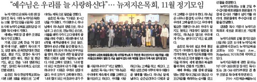 "예수님은 우리를 늘 사랑하신다" --- 뉴저지은목회, 11월 정기모임 작성자 정보 복음뉴스 작성 작성일 2025.11.11 07:22 컨텐츠 정보 목록 본문 복음뉴스 제공 2025년 11월 11일(화) 자 뉴욕일보 A4면 기사 SNS 공유 관련자료 댓글 0 등록된 댓글이 없습니다. 로그인한 회원만 댓글 등록이 가능합니다. 목록