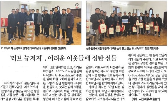 복음뉴스 제공 2025년 12월 27일(토) 자 뉴욕일보 A1면 기사