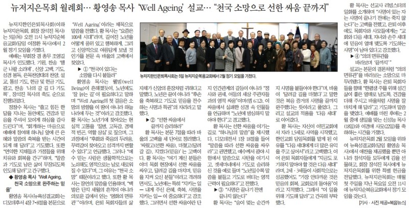 뉴저지은목회 월례회 --- 황영송 목사 'Well Ageing' 설교 --- "천국 소망으로 선한 싸움 끝까지"