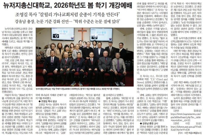뉴저지총신대학교, 2026학년도 봄 학기 개강예배 작성자 정보 복음뉴스 작성 작성일 2026.02.18 07:42 컨텐츠 정보 목록 본문 복음뉴스 제공 2026년 2월 18일(수) 자 뉴욕일보 A4면 기사 SNS 공유 관련자료 댓글 0 등록된 댓글이 없습니다. 로그인한 회원만 댓글 등록이 가능합니다. 목록