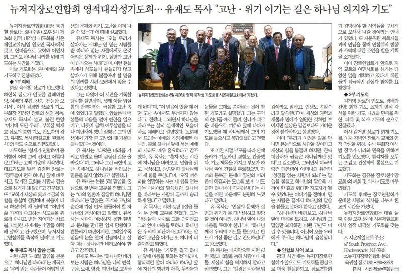 뉴저지장로연합회 영적대각성기도회 --- 유재도 목사, "고난 위기 이기는 길은 하나님 의지와 기도"