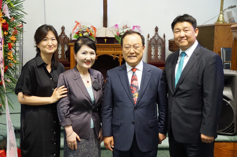 일주일 전에 은퇴한 우수환 목사가 "문제가 많은 이민 교회에 정도를 걸으며 선을 행하신 목사님을 사랑합니다"라고 5행시를 지어 축하의 말을 했다.
