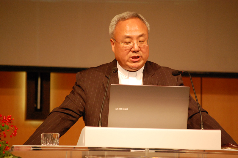공동의회 개표 결과 발표 후 교인들에게 메시지를 전하는 양춘길 목사