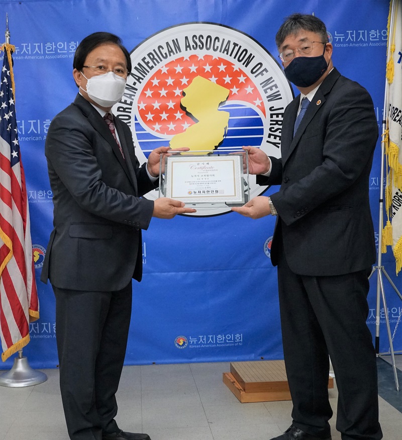 뉴저지교협 전 회장 장동신 목사, 뉴저지한인회로부터 감사패 받아뉴저지한인회 손한익 회장은 뉴저지교협 전 회장 장동신 목사에게 감사패를 증정했다.