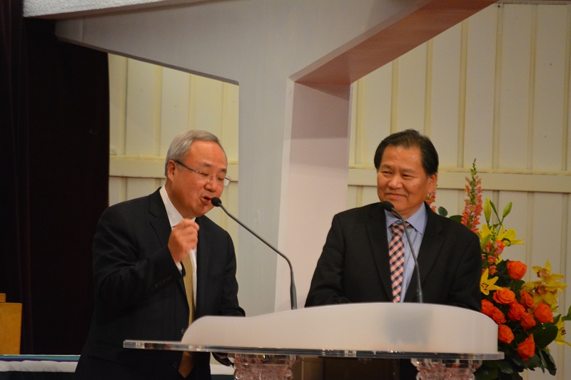 이강 목사와 양춘길 목사가 키놋 스피치를 했다. 이 목사와 양 목사는 동시에 마이크 앞에 서서 마치 대담을 하듯이 스피치를 했다.