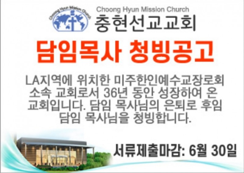 충현선교교회(LA) 담임목사 청빙공고