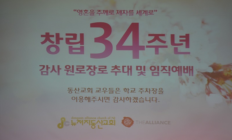 뉴저지 동산교회 창립 34주년 감사 원로장로 추대 및 임직 예배 순서별 동영상