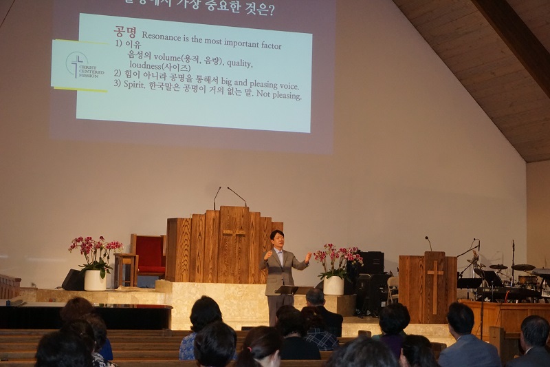 김 목사는 발성에서 가장 중요한 것은 공명이라며 매일 20분씩 연습하면 프로 못지않은 목소리를 낼 수 있다고 강조했다.