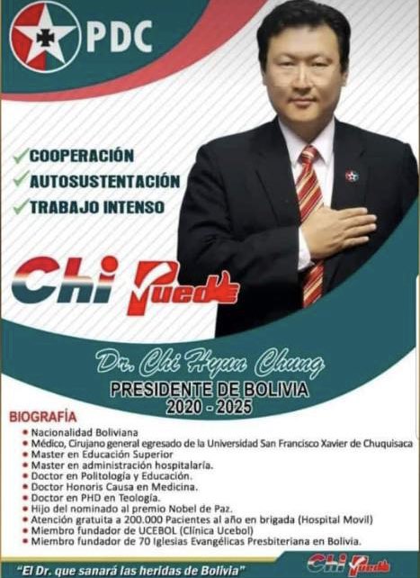 한국인 목사가 볼리비아 대통령 선거에 출마했다.