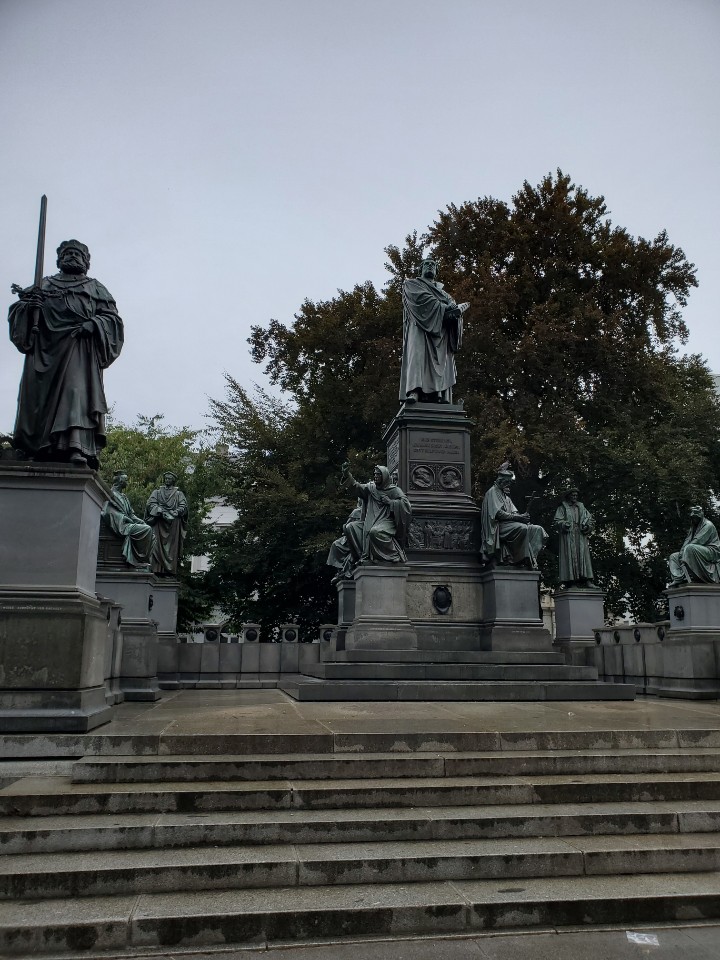 먼저 보름스에서 루터의 동상이 있는 곳으로 갔다. 성경책을 펴 들고 있는 루터의 동상이 중심에 있고 루터의 동상 바로 아래 루터의 동상을 둘러싸고 앉아 있는 종교 개혁전의 종교 개혁자 네명의 동상이 있고 그 바깥쪽으로 일곱명의 동상이 있다. 동상에는 그의 신학적, 예술적 가치가 다 담겨져 있다.