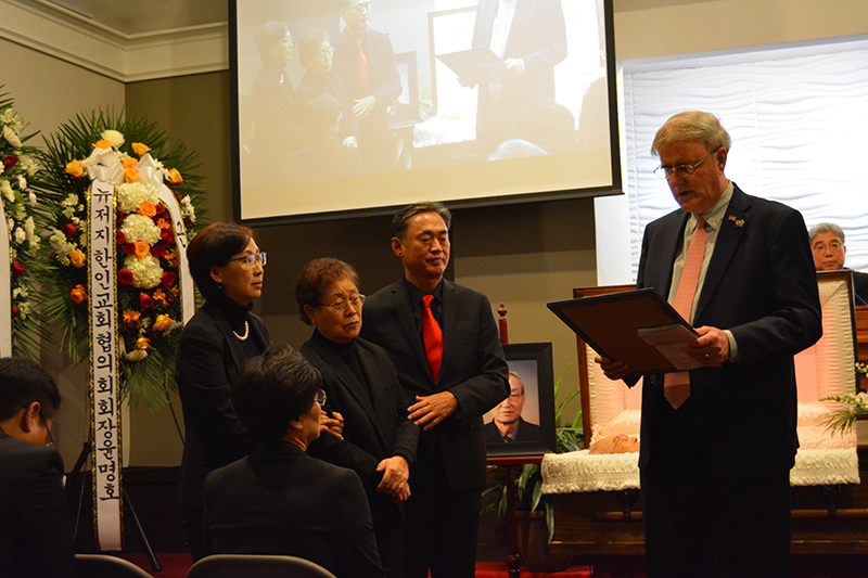 RCA 교단에 속한 한인 목회자들과 미국인 목회자들, 고인을 기리는 많은 지인들, 한성교회의 교우들이 예배실은 물론 지하 친교실에 마련된 영상 예배실까지 꽉 들어찬 가운데 드린 예배의 사회는 김종국 목사(새언약교회 담임)가 맡았다.